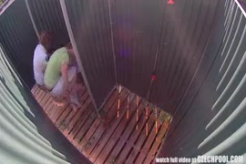 فتيات ورجال عراة في دش عام وصبي يظهر قضيبًا.